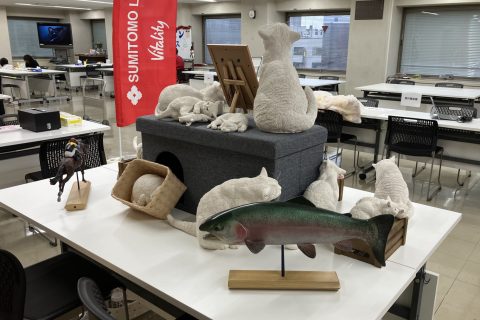 イベントに出展させていただきました。 2025/11/03 2025.11.1. 住友生命旭川泉支部主催「お客さま感謝デー」(旭川市3条通9丁目)に出展し、ご来場のお客さまに作品をご覧いただきました。作品のエピソードや制作方法についてご質問を受けたり、実際に作品を触っていただくなど、沢山のペット好きのお客さまと貴重な触れ合いの体験ができました。